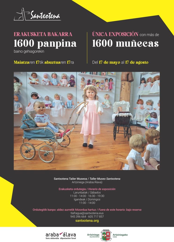 El jueves 14 de mayo el Taller Museo Santxotena de Artziniega inauguró la tercera edición de su exposición Despertar de una nostalgia, con la asistencia de Cristina González, Diputada Foral de Turismo de Álava; Felipe García, Director de Turismo de la Diputación Foral de Álava; Joseba Vivanco, Alcalde de Artziniega e Íñigo Pinedo, Presidente de la Cuadrilla de Aiaraldea. Junto a Teresa Lafragua, comisaria de la exposición, y el escultor Xabier Santxotena, recorrieron la muestra formada por más de 1.600 muñecas datadas desde finales del siglo XIX hasta nuestros días.