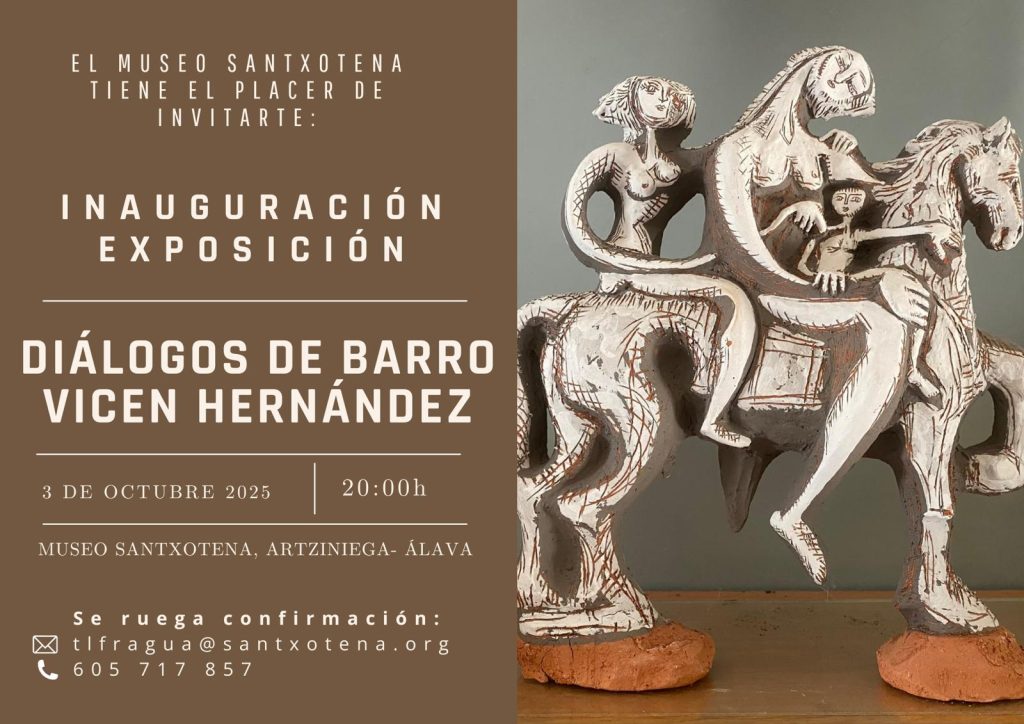 El próximo 3 de octubre, a las 20:00 horas, el Museo Santxotena de Artziniega inaugura la exposición Diálogos de barro de Vicen Hernández. ¡Os esperamos!